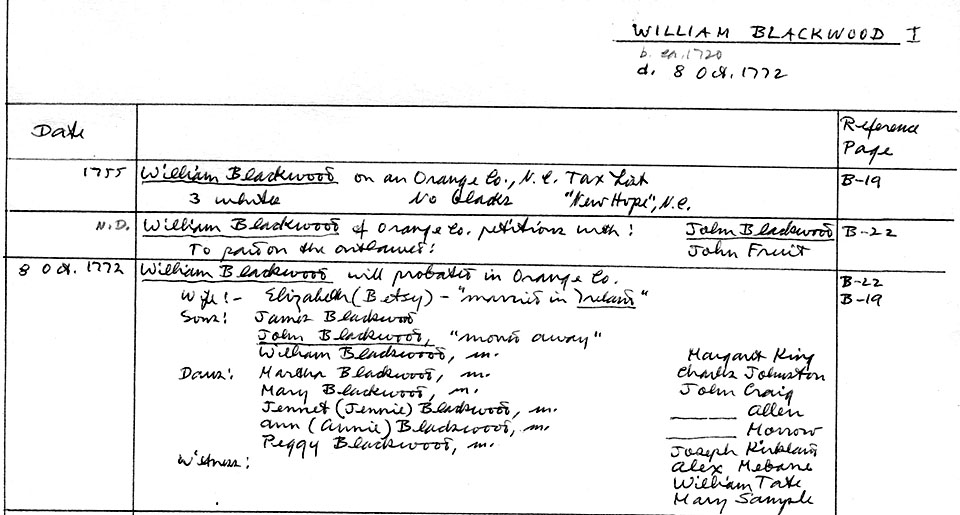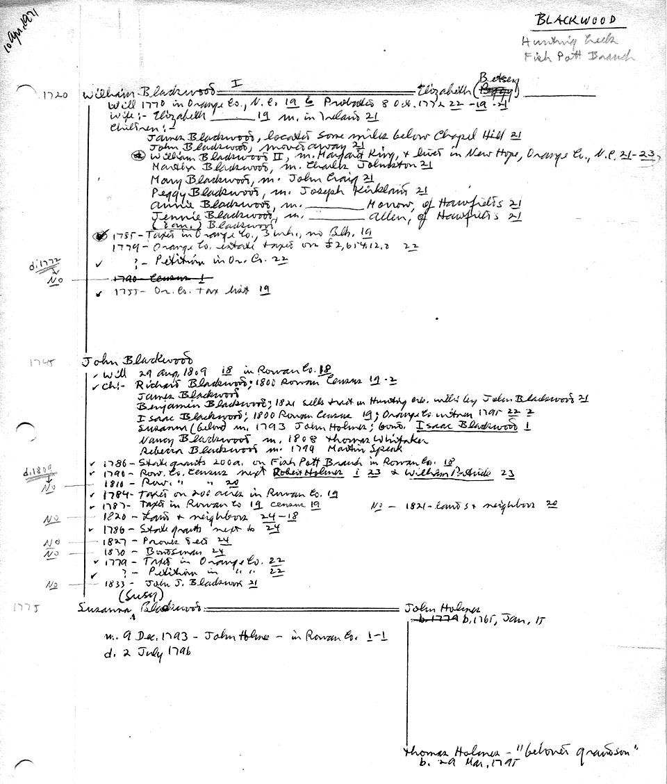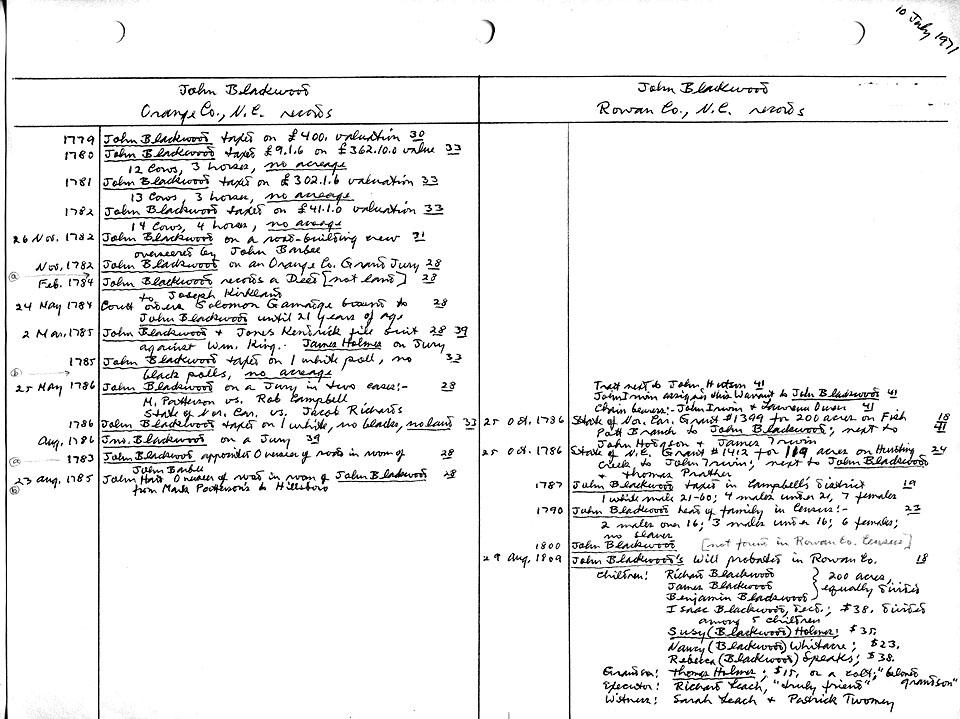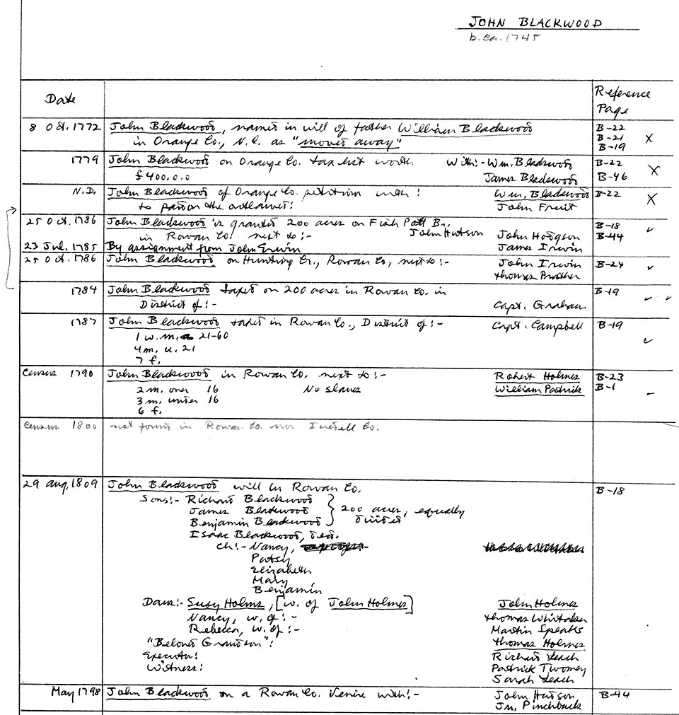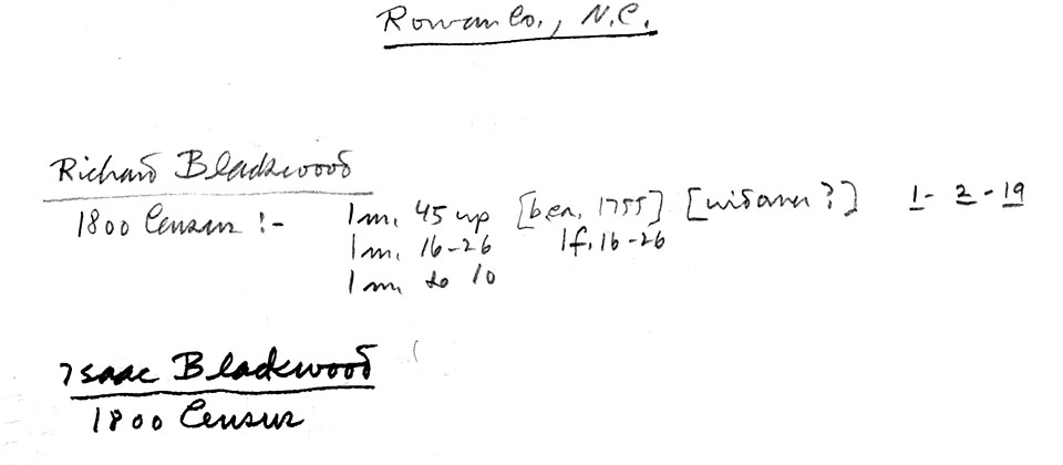 Blackwood data bank, images of source documents located at the Rowan County Public Library, Salisbury, North Carolina.