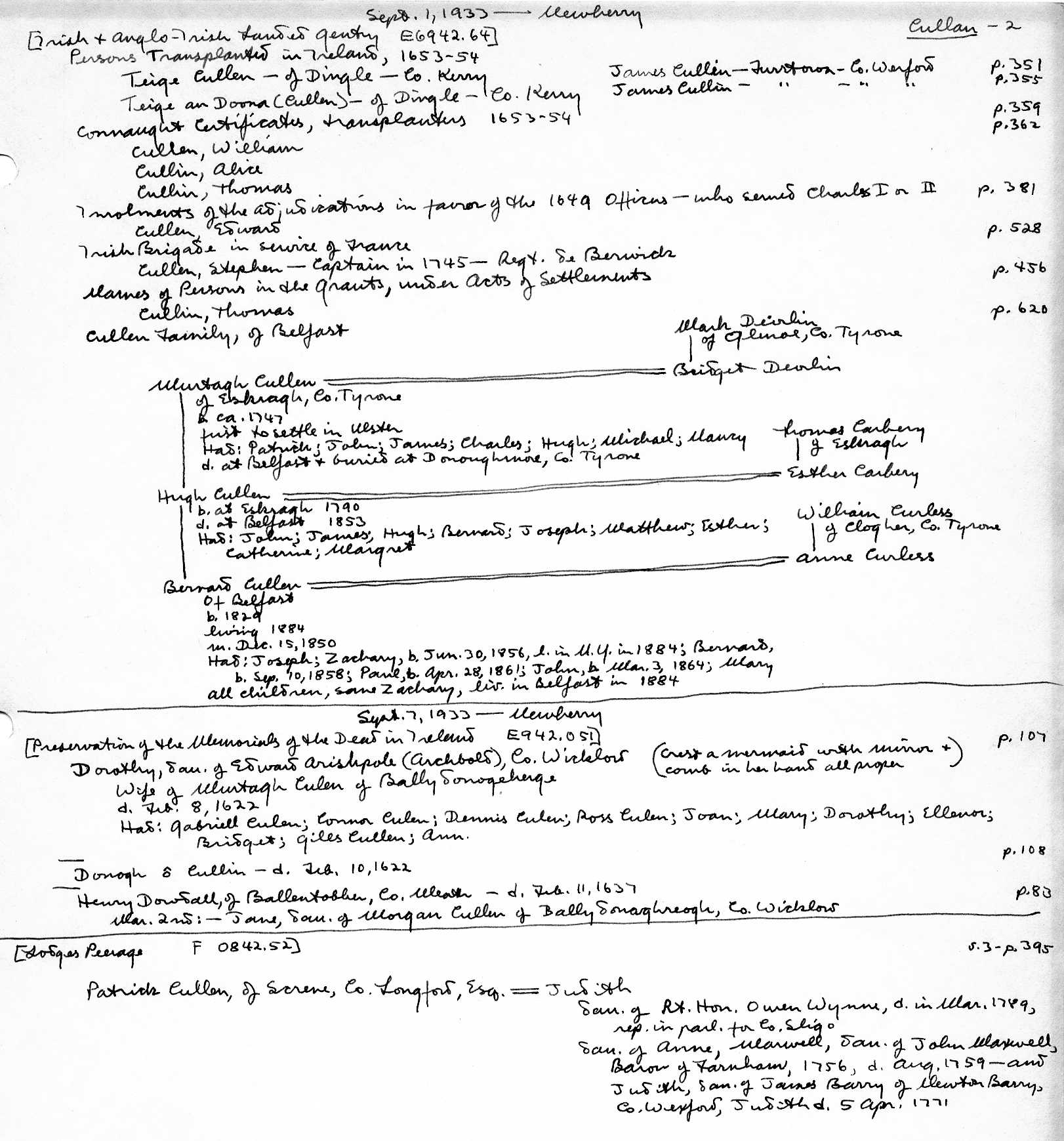 12 Sep.1933: Newberry: Preservation of the Memorials of the Dead in Ireland E942.05: (many Cullen references.) |