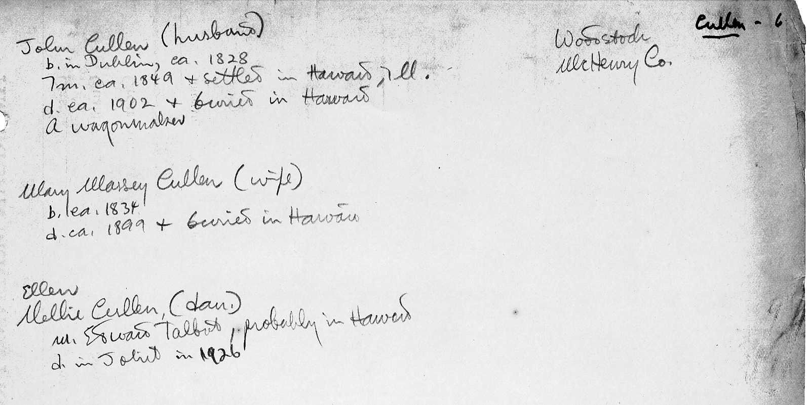 John Cullen; Mary Massey Cullen (wife); Ellen Nelllie Cullen (daughter.)