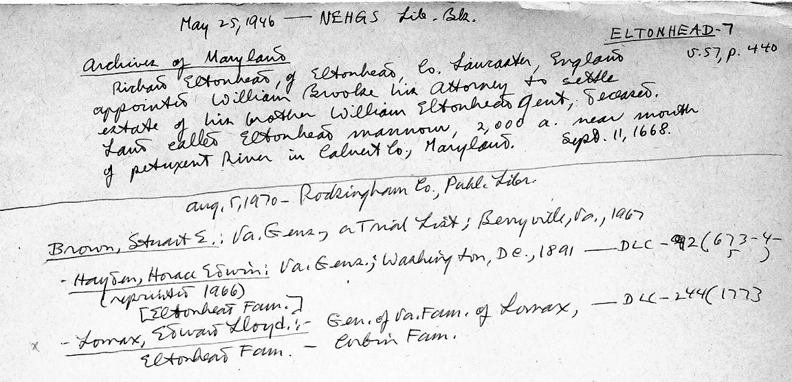 25 May 1946: N.E.H.G.S. book, Archives of Maryland; 5 Aug.1970: