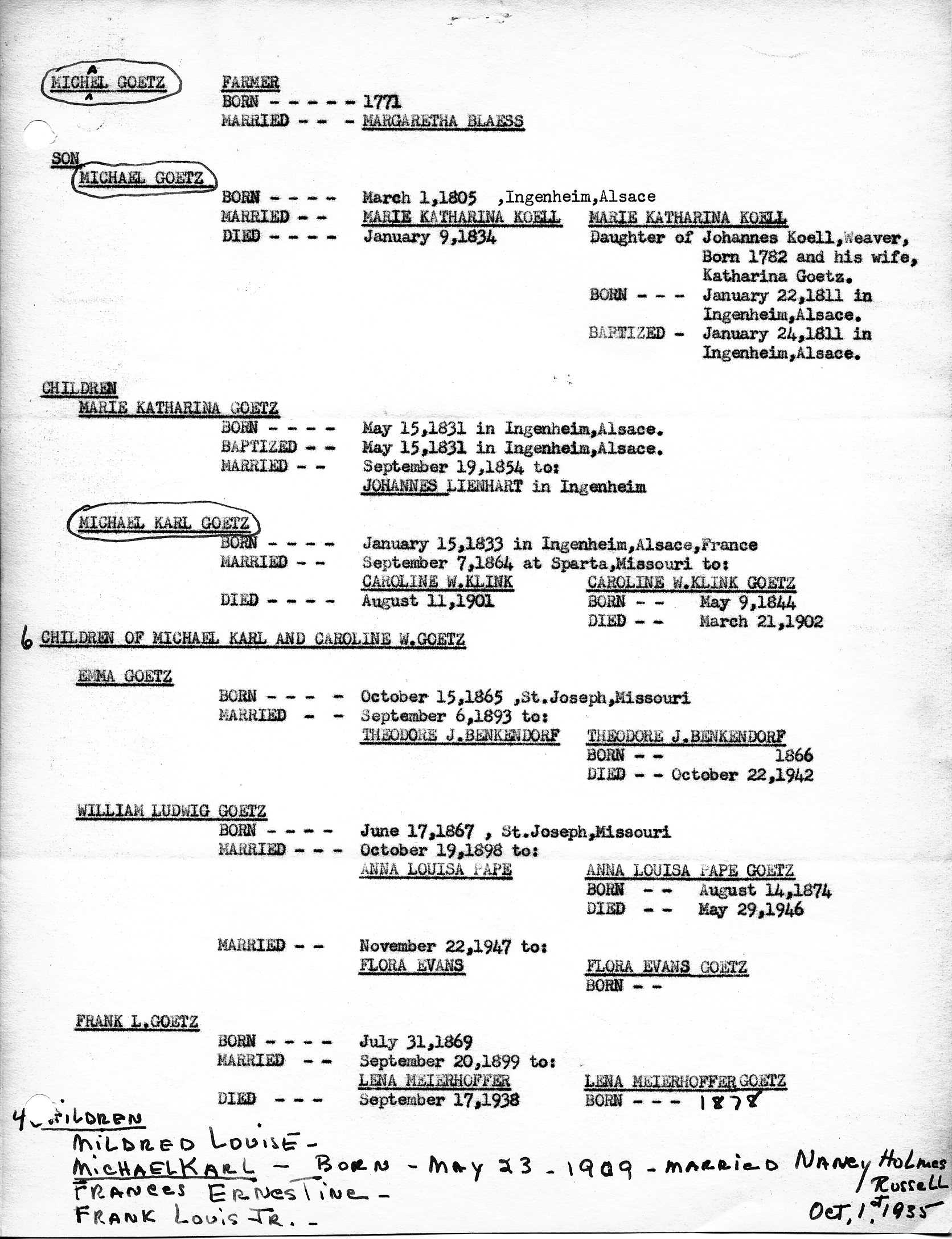 Goetz-004.jpg | Typed notes: Michael Karl Goetz and subsequent families. |