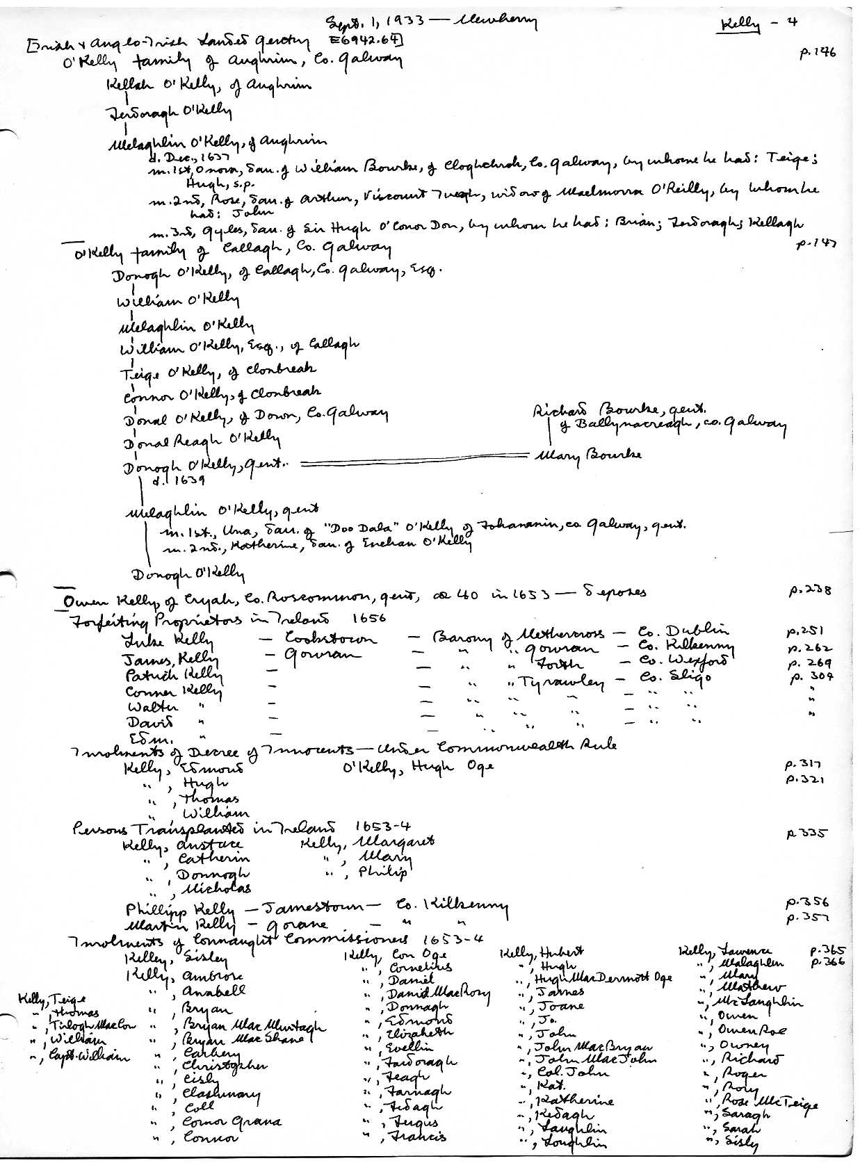 1 Sep.1933: Newberry: Irish & Anglo-Irish Landed Gentry E6942.64; as above, continued.
