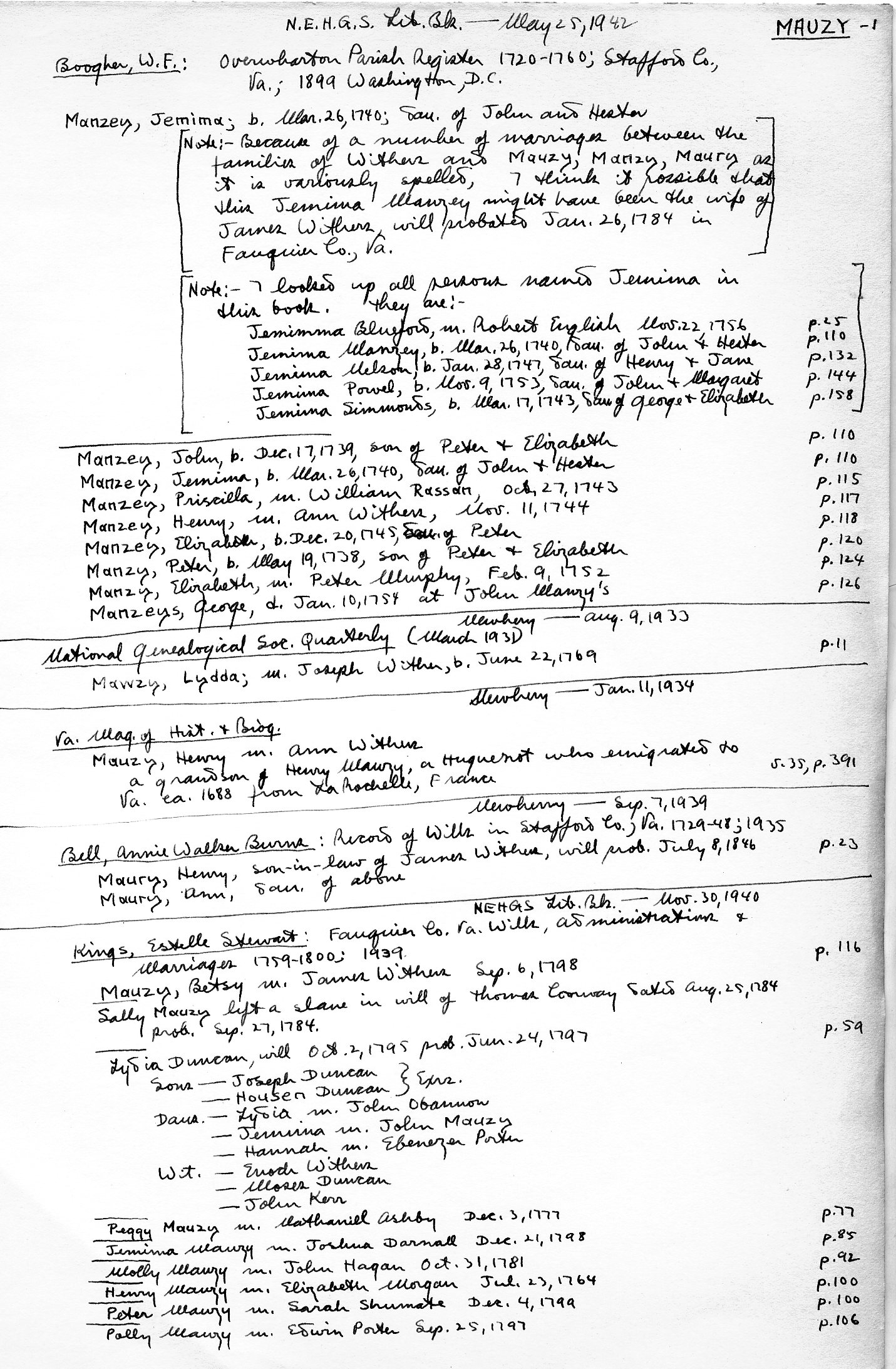 May 1942: N.E.H.G.S. book: Boogher, W.F.: Overwharton Parish Register 1720-1760;