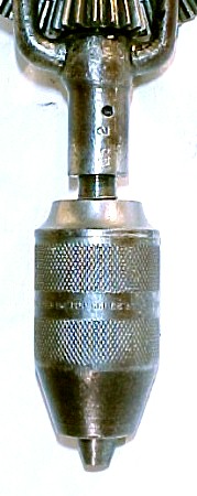 This is the protected-spring chuck design that was patented October 23, 1900. The springs that keep the jaws pulled back and pushed out against the inner wall of the shell are behind the jaws, where no amount of poking with the drill bit can get at them. |